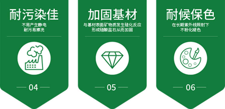 弗克風(fēng)?涂料采用納米二氧化硅作為膠凝物質(zhì),并根據(jù)應(yīng)用需要,采用自主工藝對硅酸鹽材料進(jìn)行改性,弗克風(fēng)技術(shù)成功攻克傳統(tǒng)無機(jī)涂料穩(wěn)定性差、易泛堿、難調(diào)色的難題,發(fā)明出擁有國家發(fā)明專利技術(shù)的弗克風(fēng)硅質(zhì)漆。